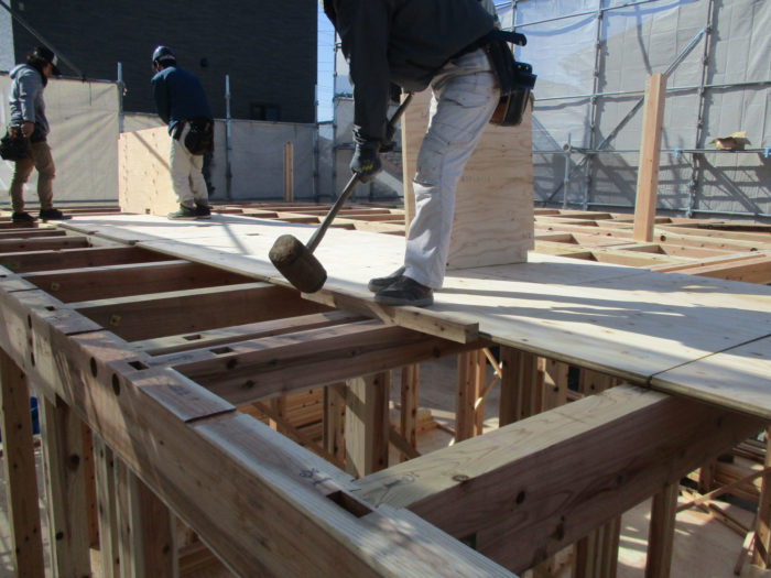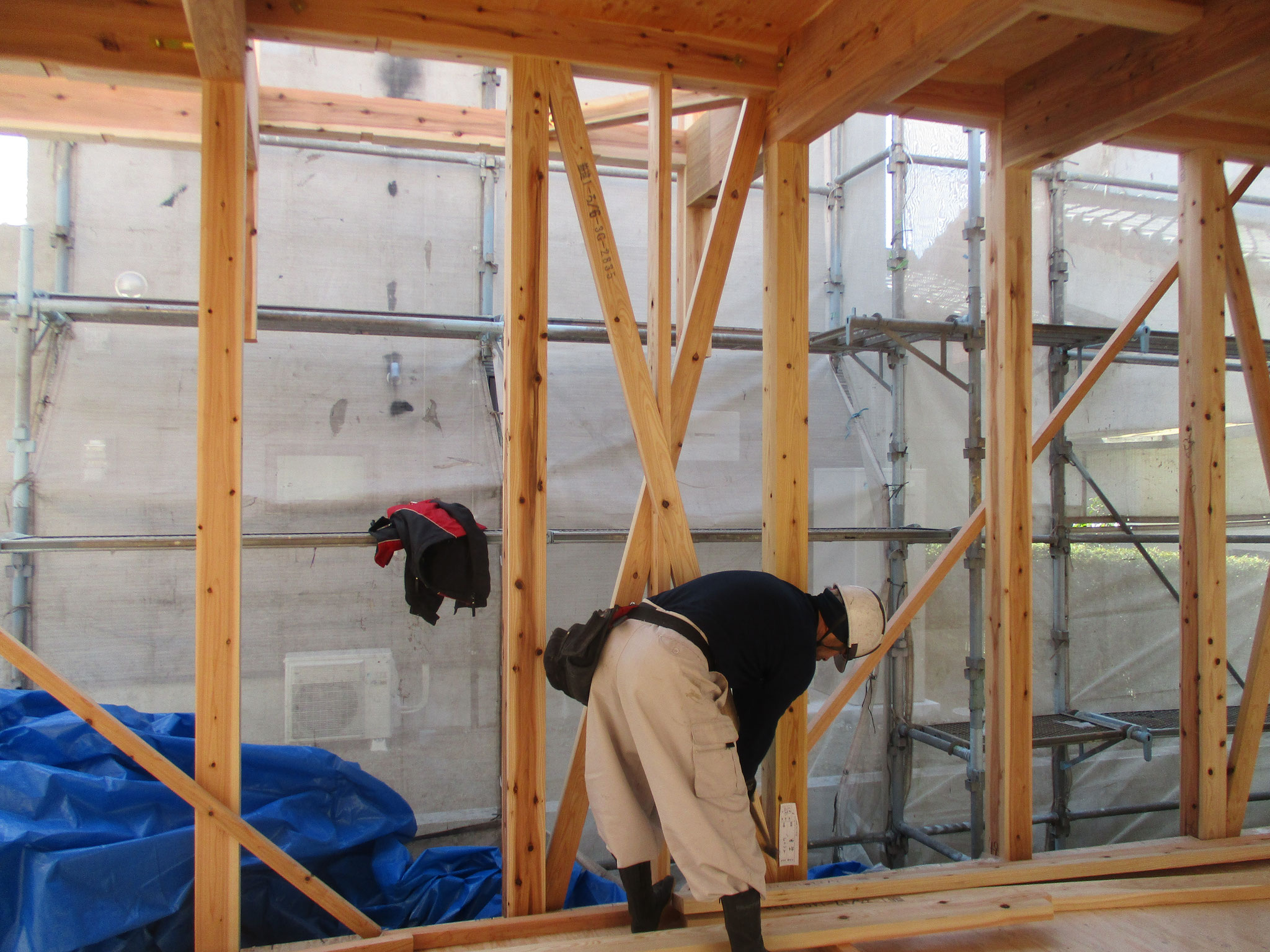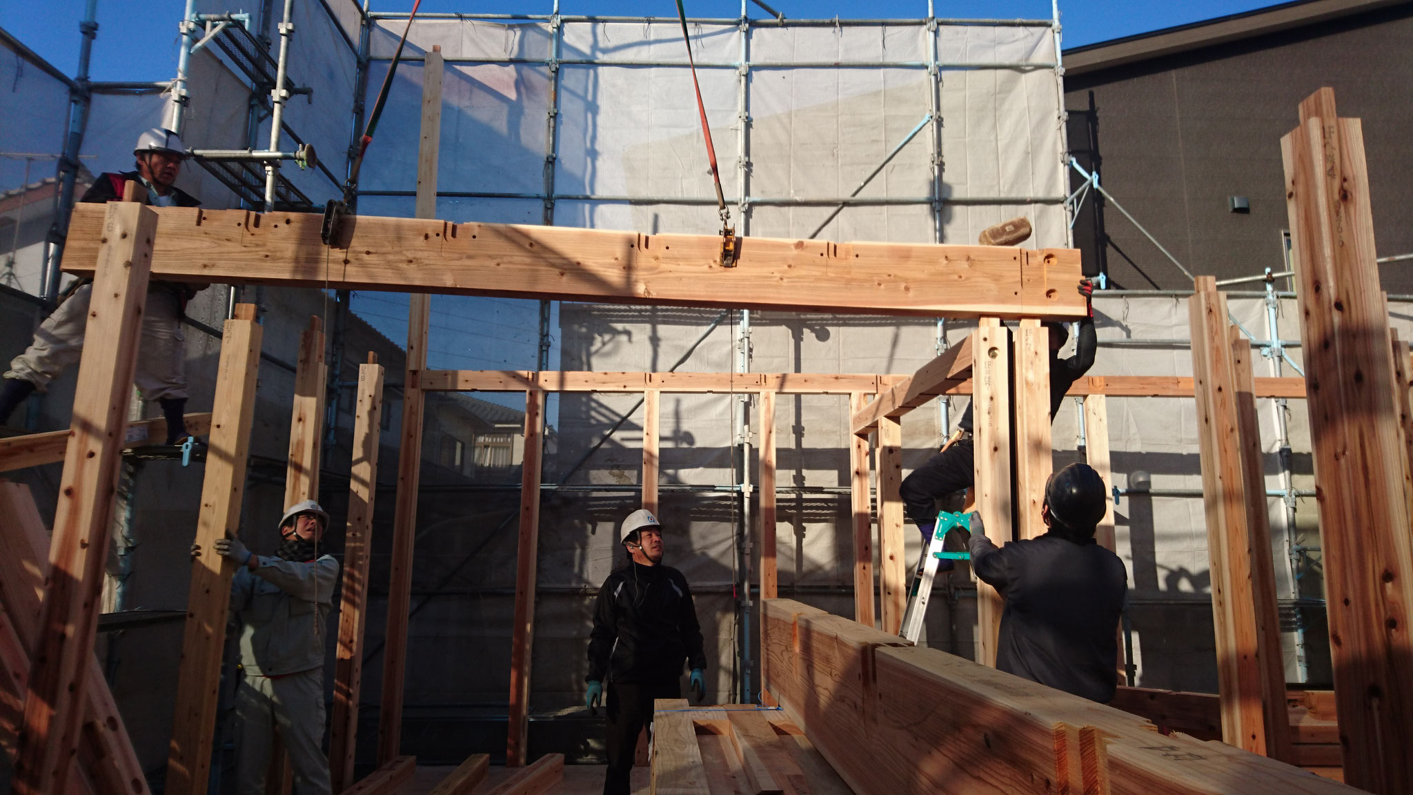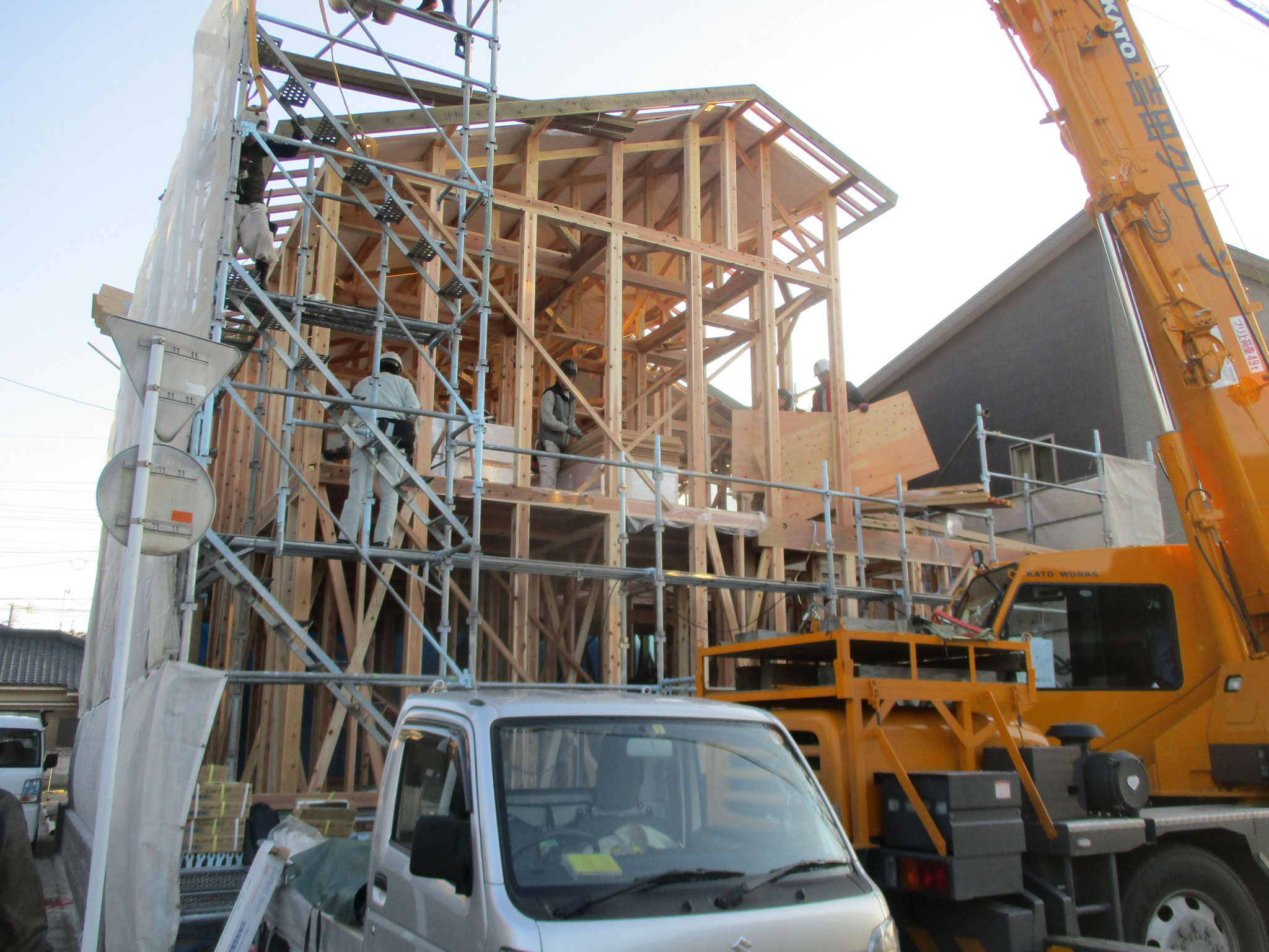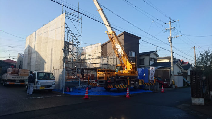 先週の土曜日、玉里団地に建つ2世帯住宅の家の建方がありました!