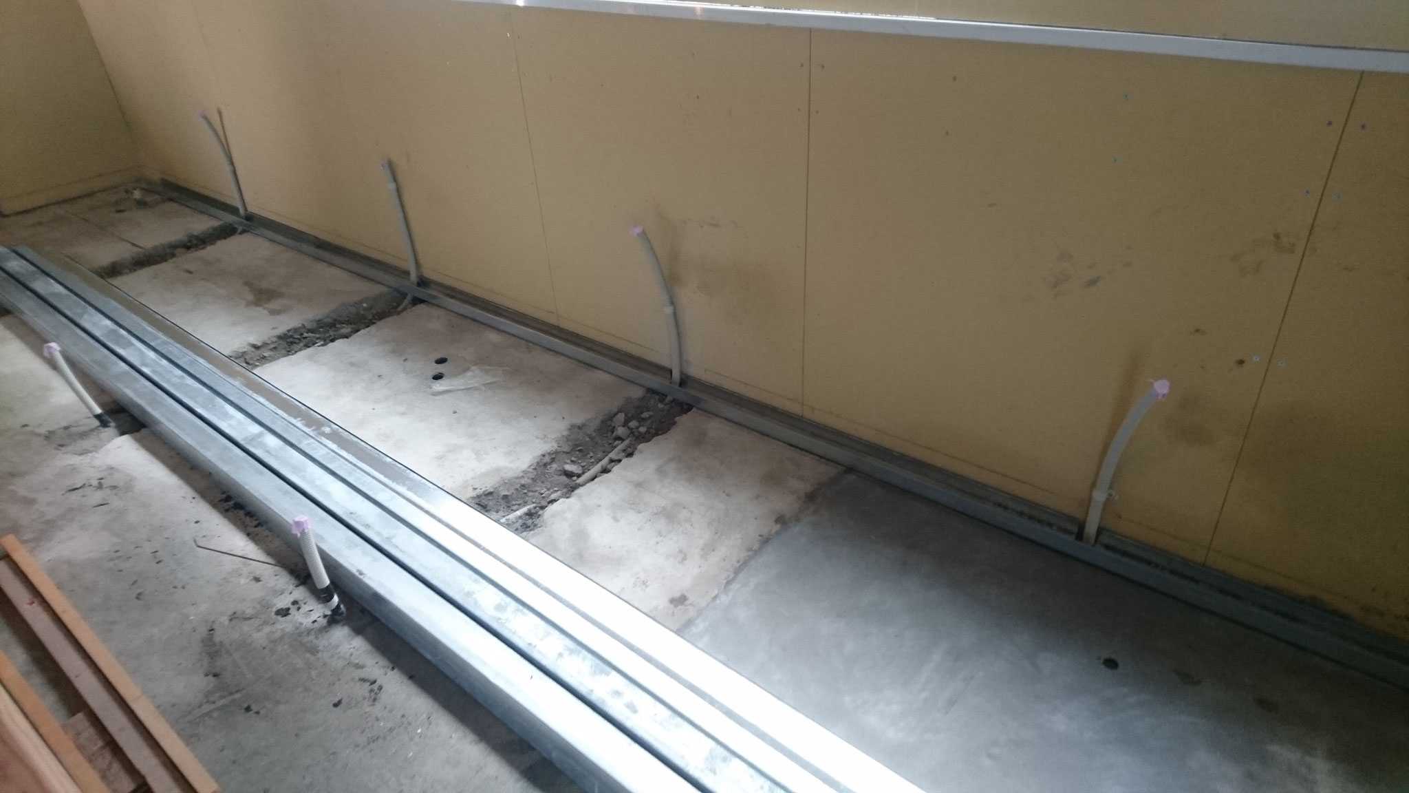 壁の下地で、ランナーというコの字型の軽天を床と天井に取り付けるのですが・・・