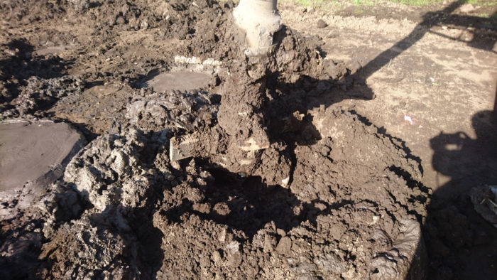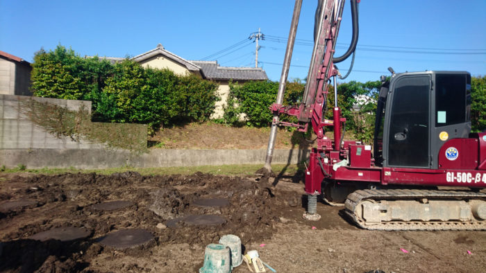 柱状改良とは、建物がのる位置に建物を支える円状の柱を造っていく作業のことです。