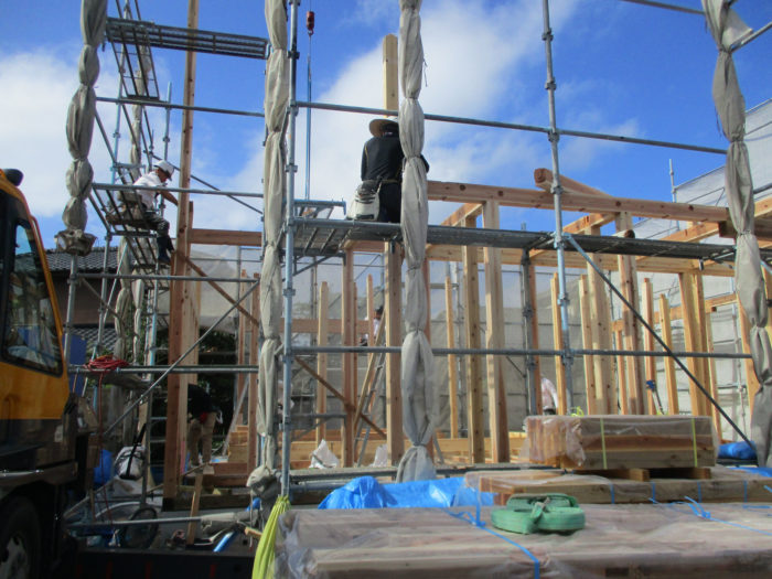 雨が続いてなかなか建てられなかったので、無事建て方が終わった時は、ほっとしました。
