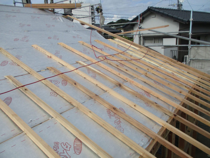 自社物件は、屋根の下地(小屋裏部)に、タイベックシルバーというシートを施工します。