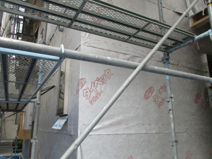 サイコウでは、外壁のサイディングを張る前にタイベックシルバーというシートを張ります。
