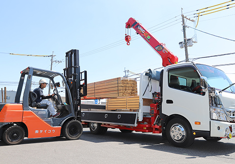 当社では、木材他、合板、断熱材、建具、建設資材など、住宅建材などの商品を幅広く取り扱っております。