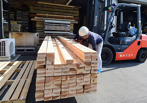杉材の乾燥素材や特注素材等、強度を求められる構造材から美しい木目の造作材などを取り扱っており、特注材は、プレーナー加工などの形状加工が可能です。