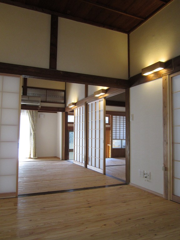 施工物件紹介です。昨年の夏に私が担当しました。原良の古民家です。鹿児島市の耐震補強の補助金、住宅エコポイント、かごしま木の家のかごしま材を使用した補助金活用した工事です。 ほとんどの部屋が畳敷だったのですが、床の断熱や一部台所を改修と構造計算をして耐震強度を上げる工事をしました。 お客様も出来栄えに感激され、まさにビフォーアフターでした!