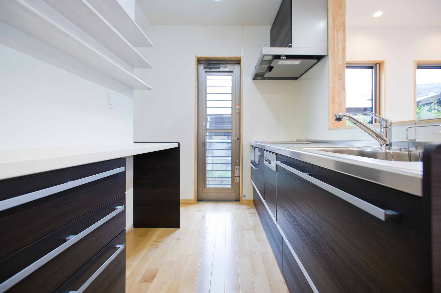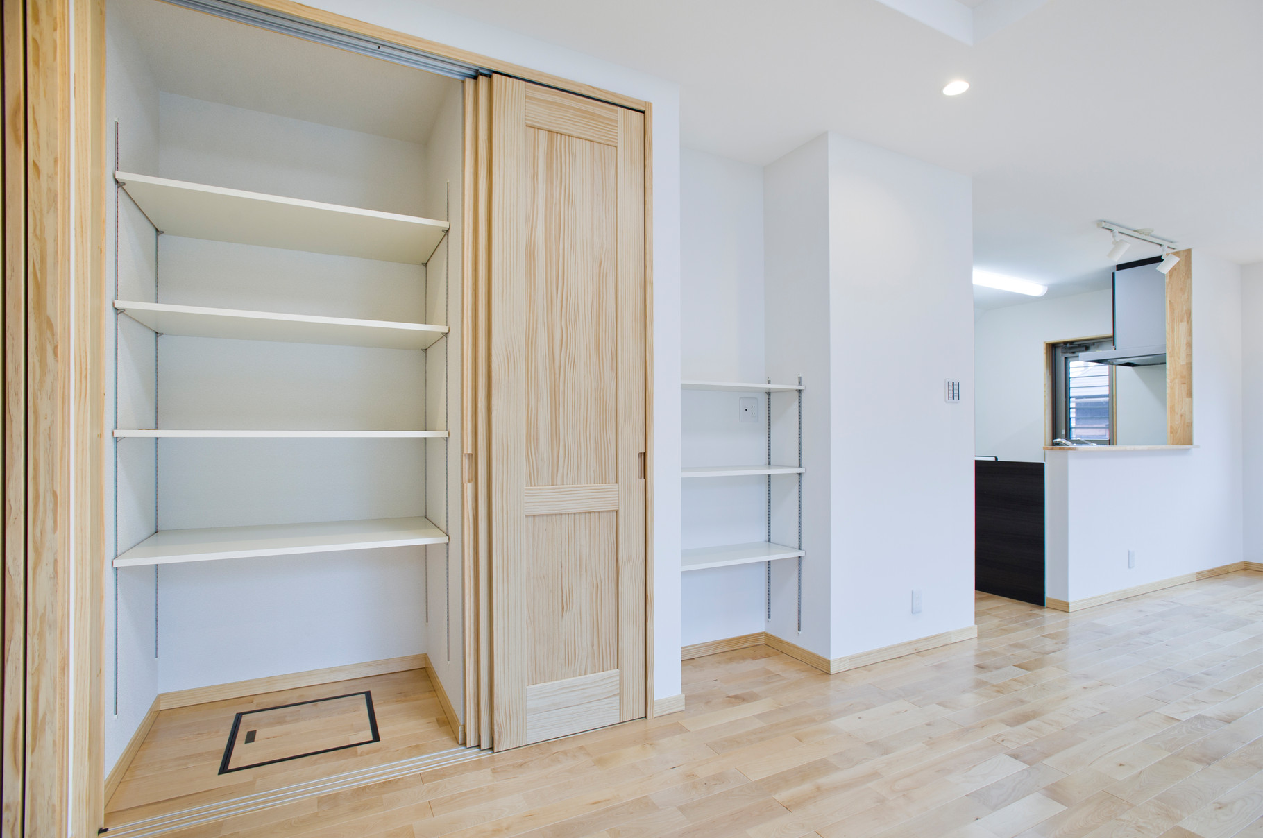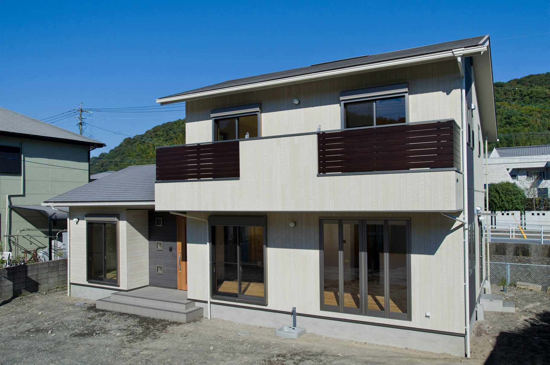 小野町にて川沿いの景観のいい場所に建つ2世帯(同居型)住宅です。長期優良レベルの仕様に自然素材の内装材で仕上げたやさしい家づくりです。 ナチュラルな色使いは飽きが来ないですし、いろんな家具とも相性がいいのでインテリアや小物がなんでもあいます。